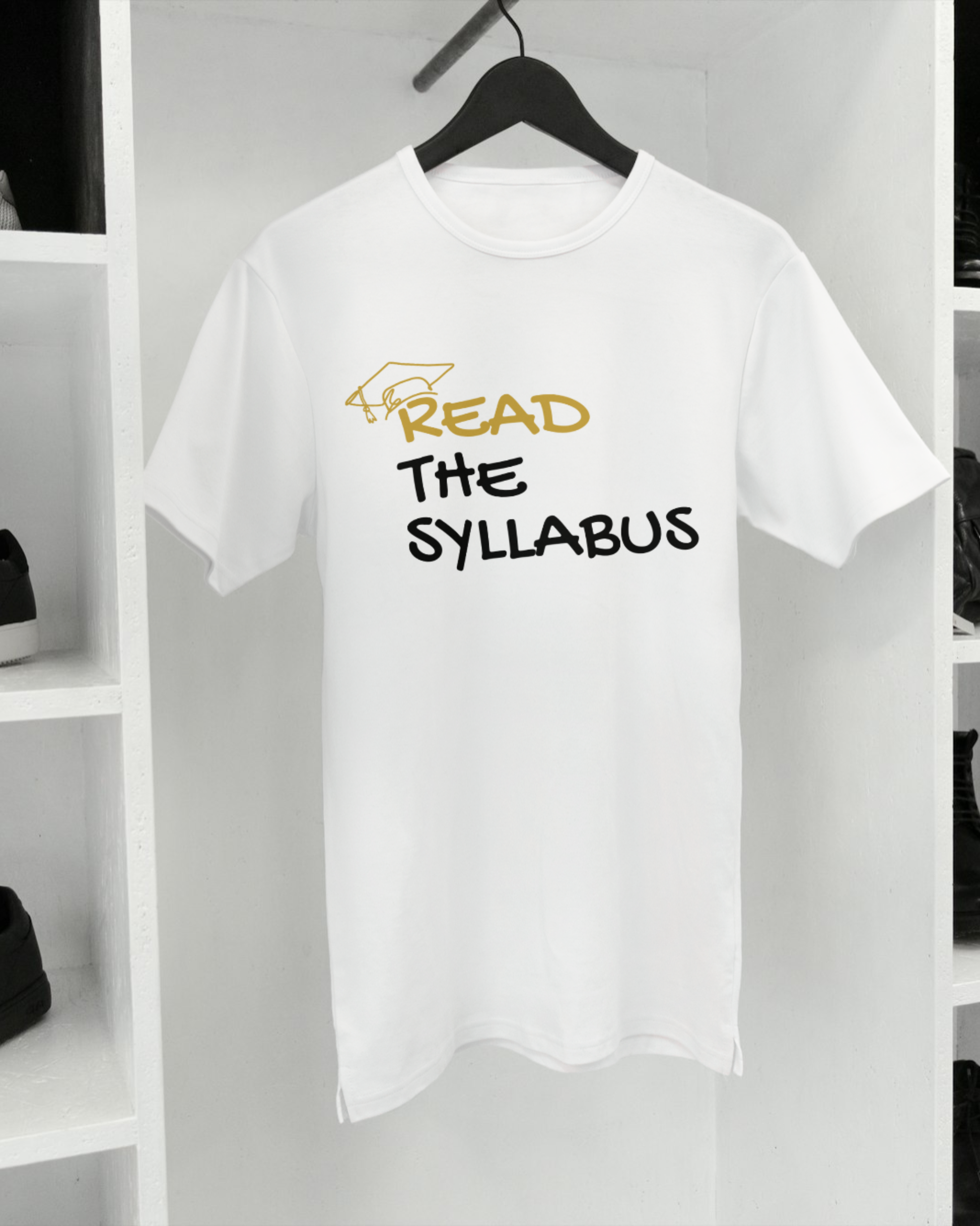 Read the Syllabus typography with gold graduation cap graphic